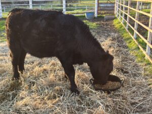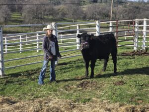 FOTC provided assistance to a 4H member for her steer project. She purchased an Angus cross steer to show at the Tuolumne County Fair in July. She named the steer Pickels and reported he weighed 870 pounds on February 21 with an average weight gain of 2.9 pounds/day. At present the steer is consuming about 16 pounds of feed daily which is a conversion ratio of of about 5.5 pounds of feed for one pound of weight gain. Feed consumption will gradually increase to almost 36 pounds per day. Feed consists mostly grain with some hay. She expects the steer to weigh 1235 pounds at fair time based on the current rate of gain.